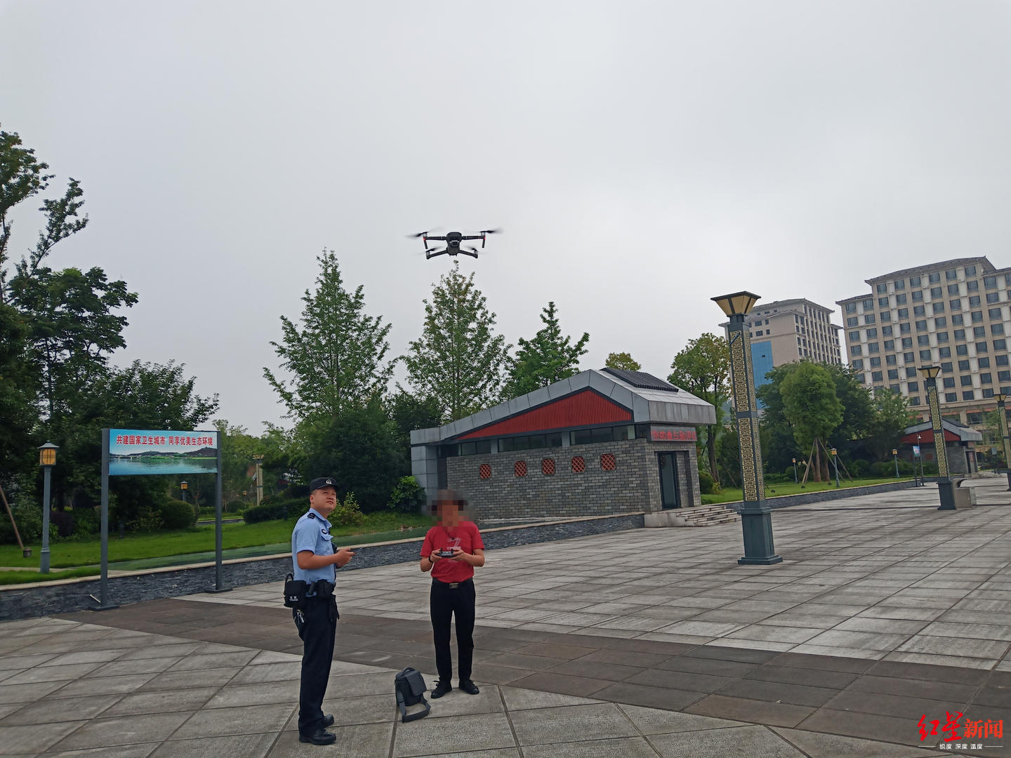 7月13日上午,一名摄影爱好者在阆中火车站站前广场上操纵无人机飞行,阆中车站派出所执勤民警迅速赶到现场进行制止。
